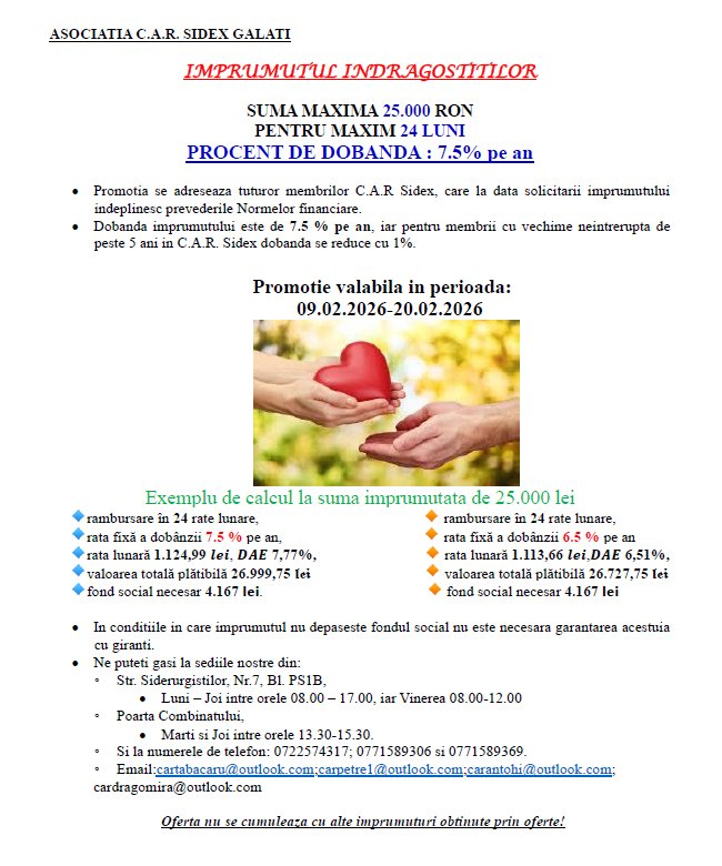 Asociatia C.A.R. SIDEX si-a deschis portile catre toti cei care vor sa devina noi membri C.A.R. , sa economiseasca, sa imprumute, sa-si ofere ajutorul tuturor membrilor.